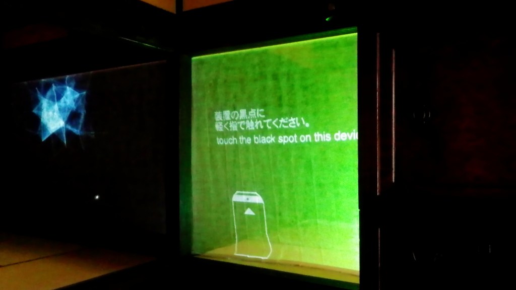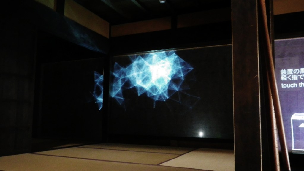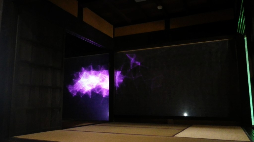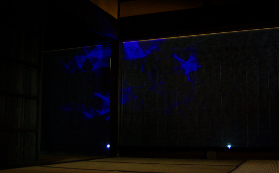 この作品はセンサーを通して鑑賞者の鼓動を取り込むことで変化する。この芸術祭では人と町家が出会う。そこに現れる出会いのフォルムが双方にとってよいものであることを願う。